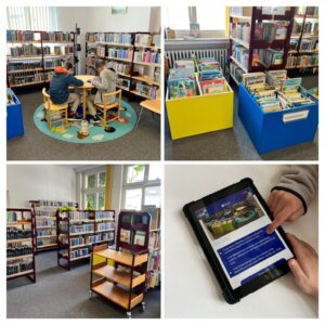 Gestern, den 14.05., waren wir in der Aplerbecker Bibliothek. Als wir angekommen sind, sind wir in die Kinderabteilung gegangen. Wir haben ein iPad bekommen und haben in 4er-Gruppen zusammen an