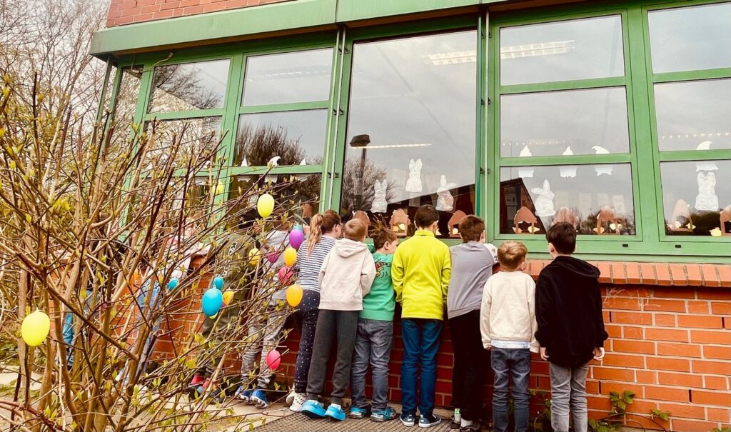 Am Dienstag waren im Klassenraum der Klasse 1/2 plötzlich Ostereier versteckt. War der Osterhase wohl da?!? Wir haben alle Eier entdeckt und sie anschließend draußen vor unserem Fenster in einen Busch gehängt. Wie schön bunt es jetzt da aussieht….
