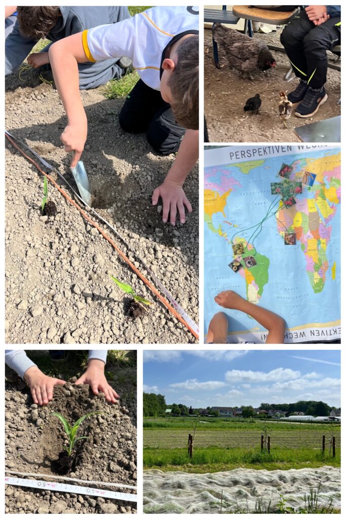 Am Mittwoch, den 07.05.2025, waren wir auf dem Lernbauernhof. Als wir da waren, sind wir in die Jurte gegangen und haben unser Frühstück gegessen. Da kamen die Hühner an und wollten unser Essen essen. Danach sind wir zum Acker hinspaziert. Wir haben einen Zettel bekommen und sollten Pflanzen suchen. Wir haben in 4er-Gruppen Gemüsepflanzen gesucht die Saison haben, also die bereits auf dem Acker und in den Folientunneln wachsen. Als wir fertig waren, sind wir in einen Folientunnel gegangen. Da war es sehr warm. Aber wir haben eine Weltkarte angesehen und sollten uns mit der Herkunft von Lebensmitteln beschäftigen. Als wir fertig waren, haben wir Mail und Bohnen eingepflanzt. Danach sind wir wieder zur Schule gefahren. Der Tag war schön.